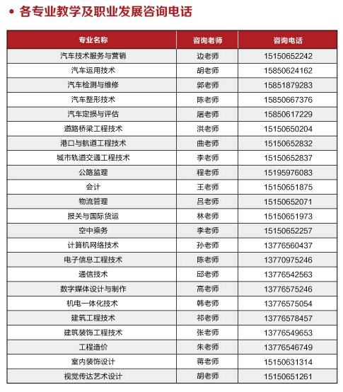 我院2015年普通高考各招生专业咨询电话