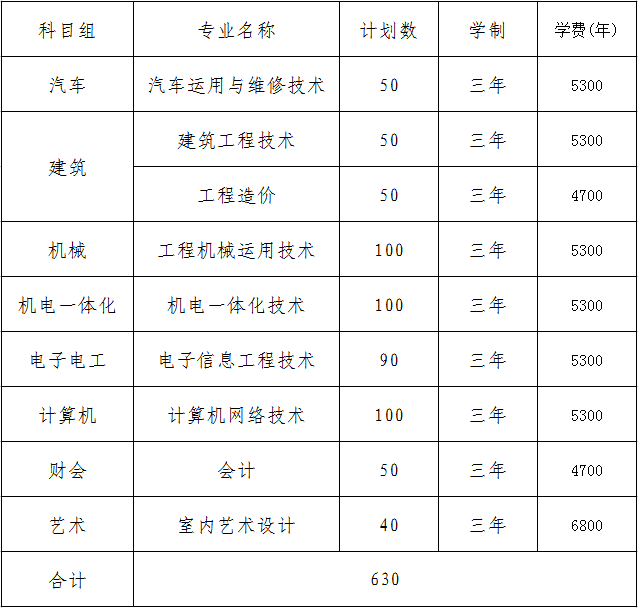 2018年对口单招招生计划