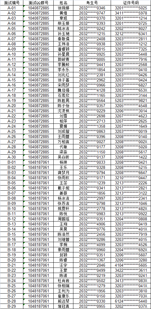 我院2020年高职提前招生空中乘务专业“中英文语言表达及综合素质面试”将于5月25日下午采用“网上视频面试”的方式进行。考生需于5月24日前加入指定QQ群备考。考生名单如下: