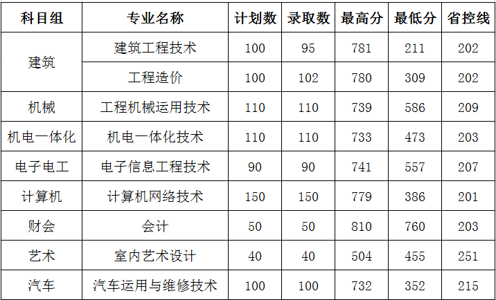 2020年对口单招录取分数线